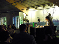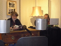 Reinhold Friedl las gemeinsam mit Susanne Kliem und Jan Zweyer im überfüllten Café Kropff in Olsberg aus seinen Kurzkrimi "Jubiläumsfeuerwerk", veröffentlicht in der Krimi-Anthologie "Mord an der Schwebefähre", die Elke Loewe für die AG Osteland zum 100. Geburtstag der Schwebefähre Osten - Hemmoor 2009 herausgegeben hat und die von einem Anschlag auf das Fährjubiläumsfest handelt.